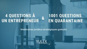 Il y a quelques semaines, YULEX a lancé une série de webinaires gratuits intitulée 4 Questions en quarantaine, diffusée sur Zoom, les mardis et les jeudis midi. Puisque cette série a été fortement appréciée au sein de notre écosystème numérique et que nous voulons diversifier davantage notre offre de contenus, nous avons décliné 4 Questions en quarantaine en trois versions de webinaires gratuits :